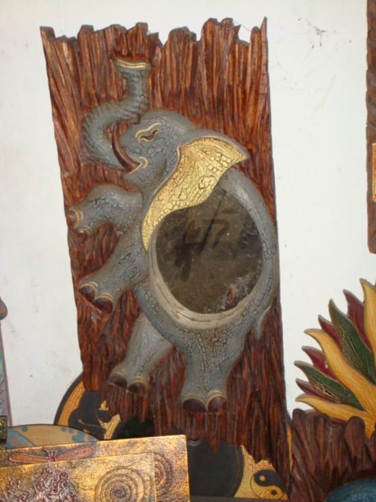 Tous les cadres de nos miroirs sont sculptés et peint à la main à Bali et à Thaïlande. Beaucoup de nos miroirs sont décorés avec des mosaïques en miroir. Ce sont des petites pièces de miroir qui sont mis dans le cadre ou dans les rayons du soleil. En Indonésie, nous laissons faire aussi des miroirs avec des motifs porte bonheur comme des miroirs avec un pentagramme, un yin yang, un ohm, une elfe, motifs celtiques, des dragons... Autres miroirs sont en teck ou sont réalisés artisanalement à base de feuilles tressées.