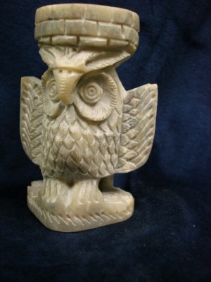 cercle en pierre savon, entourant par 5 hiboux, ø 10 cm