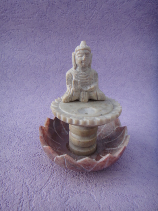 bac en pierre savon, décoré avec des fleurs, avec un bouddha, 31x5x4 cm