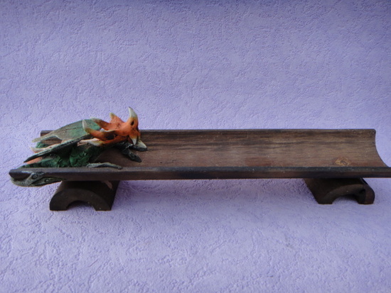 porte encens en forme de carreau avec gecko et décoration de rotin