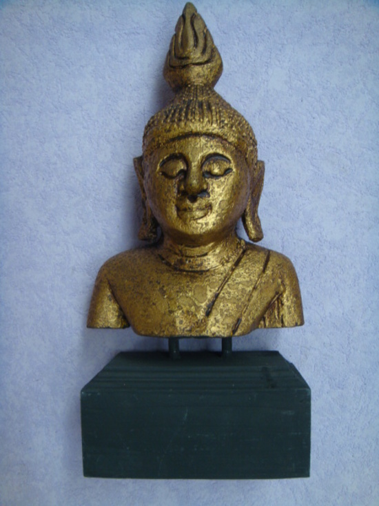 tête de bouddha, en bois ablesia, décoré avec coquille d'oeuf, 30x30 cm
